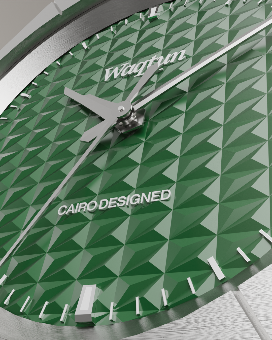 The dial, pressed in brass under oil pressure, carries Waqtun’s signature pattern, a design built with precision rather than ornament. Above it, a sapphire crystal is treated with anti-scratch, anti-fingerprint, and anti-reflective coatings, maintaining both durability and clarity in all conditions.